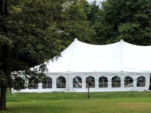 A canopy tent is a simple, reliable tent option that works for many outdoor events. If you aren’t sure what size you need or whether your yard can be staked, we can take a look and help you figure it out. See some behind the scenes footage on our Instagram!